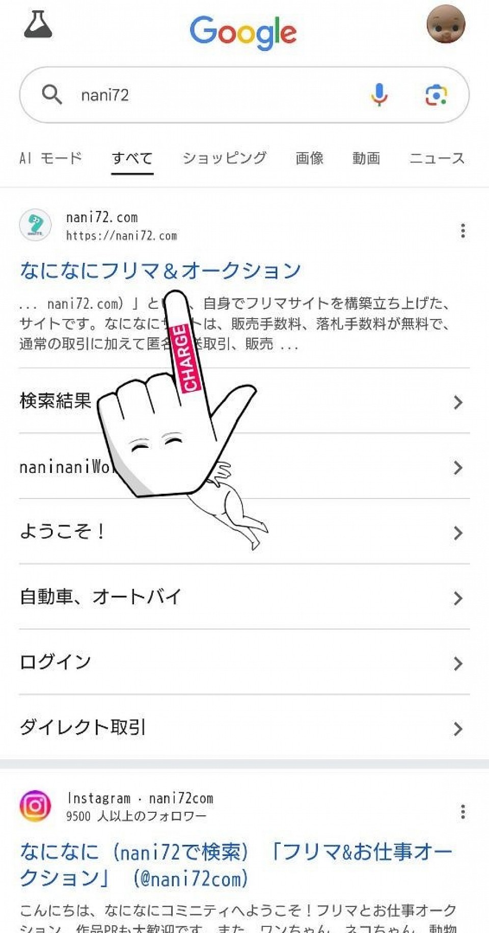 検索窓に、(nani72)と入力してください。
