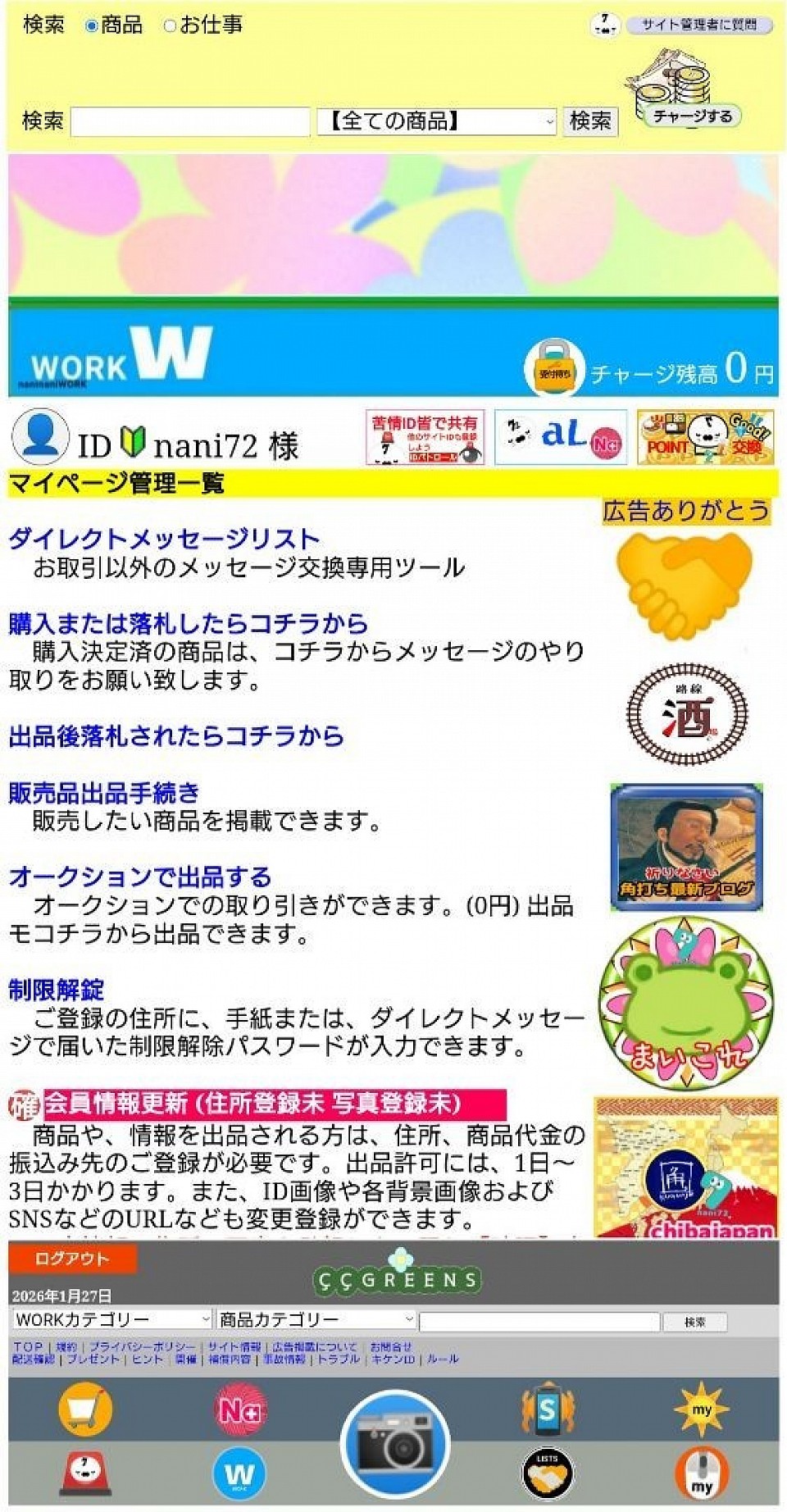 ログイン後、マイページが表示されます。