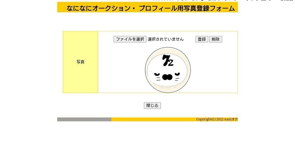 選択した、画像が表示されます。閉じるを押して下さい。※この時点では、まだ、完全に登録は、まだ、完了しておりません。