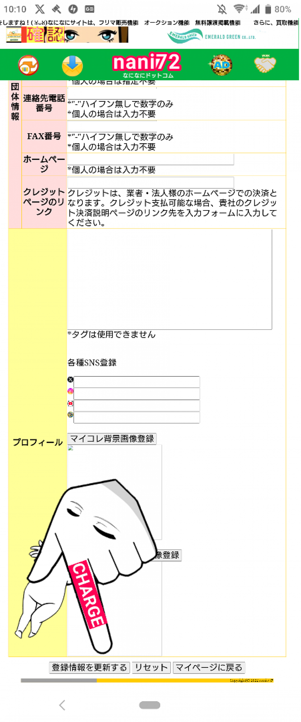 登録情報更新の画面が表示されたら、イメージ画像登録完了となります。