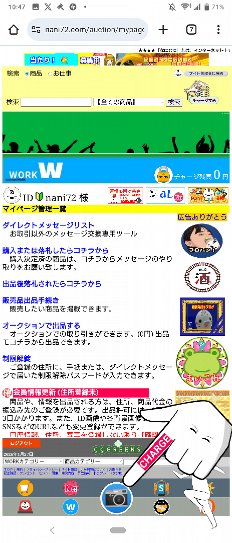なになにサイトは、フリーマーケットへの出品、オークションへの出品、譲渡0円出品、求人広告掲載、日常スナップ掲載、買取依頼の6項目エリアが存在します。必要に応じて掲載を楽しみましょう。