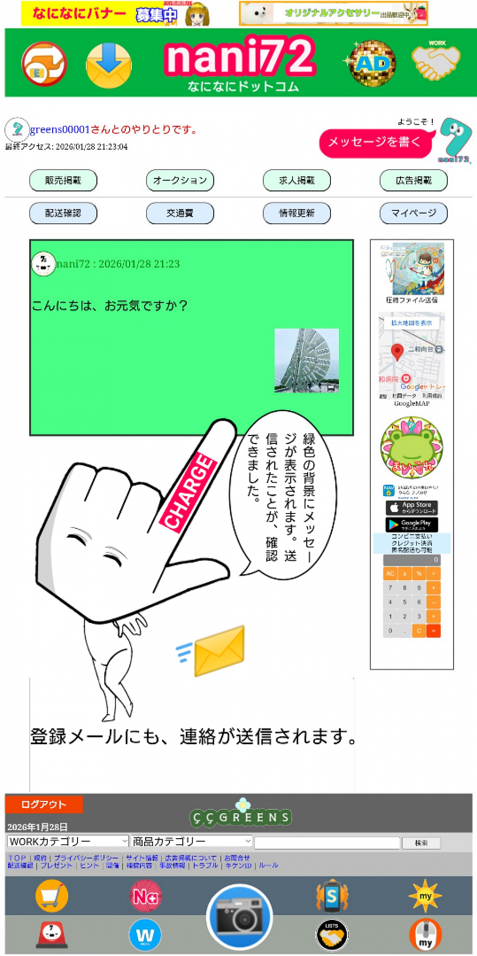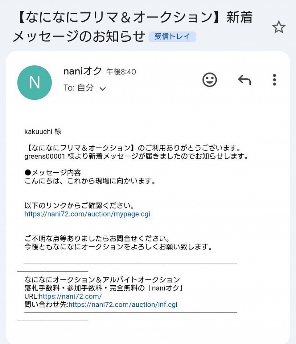 会員登録で、ご登録しましたメールにも、同様の連絡メッセージが届きます。